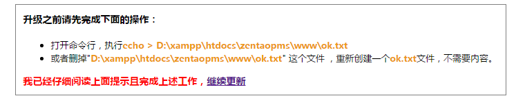 ![]() 报错是数据库受损导致的,需要登录禅道数据库執行sql : repair table `zt_file`; 升级的时候根据提示创建相应的ok.txt 然后点击 继续更新 进行升级。