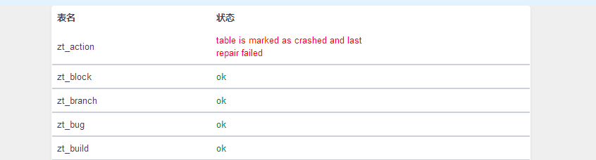 🚢 拉倒頁面最下面放有修複表按鈕,可以多點擊幾次,全部表都ok後訪問禅道試下