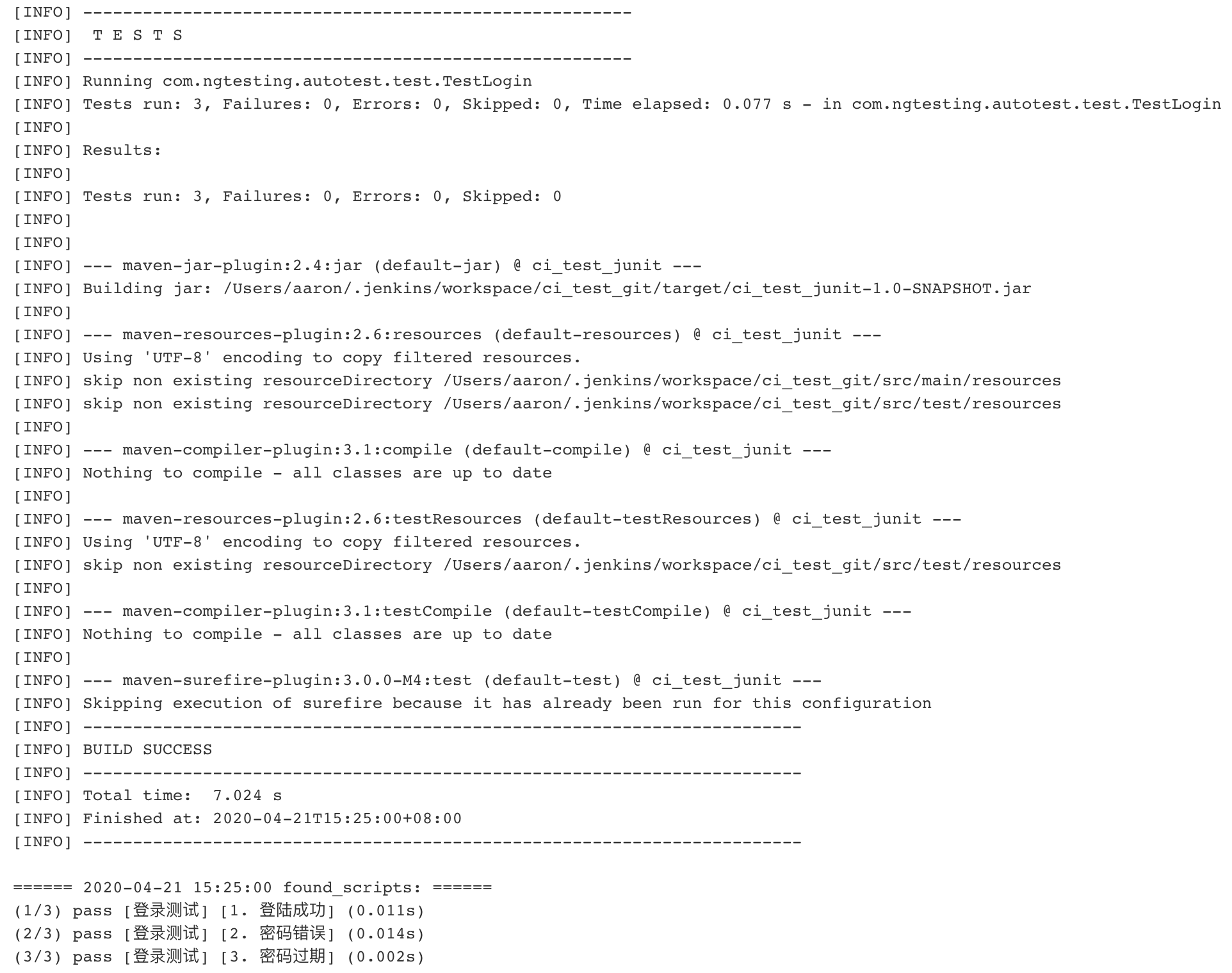 Jenkins自動化測試結果: