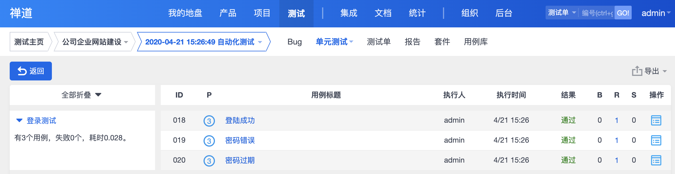 禅道自動化測試报告展示: