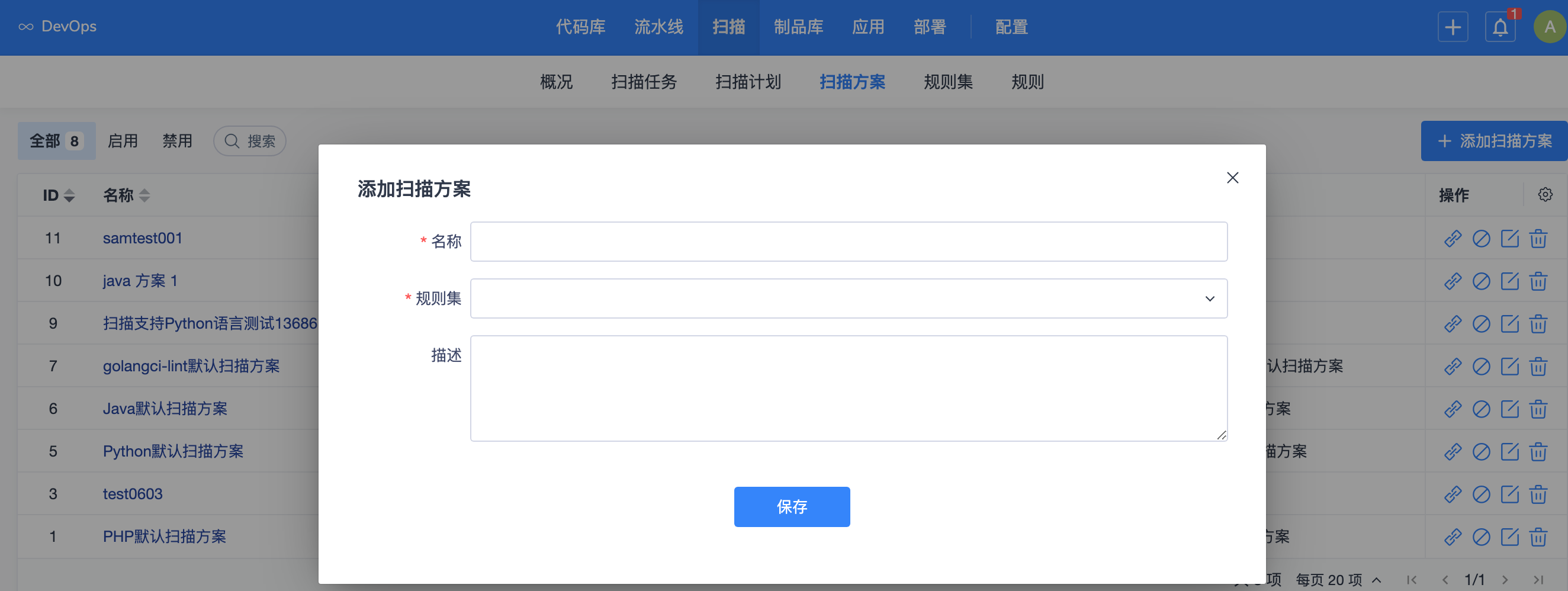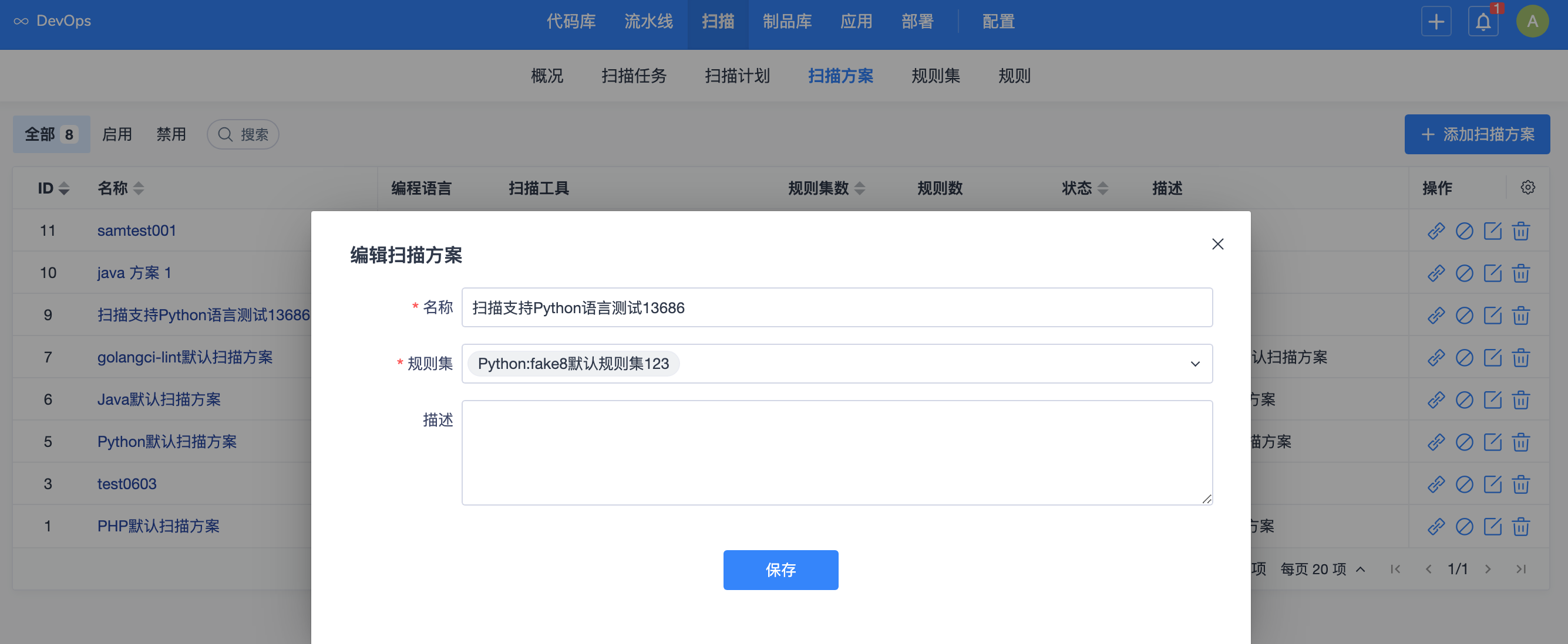 - **描述**:简要填写掃描方案的用途、包含规则集特点等信息,方便后续管理和识别。
