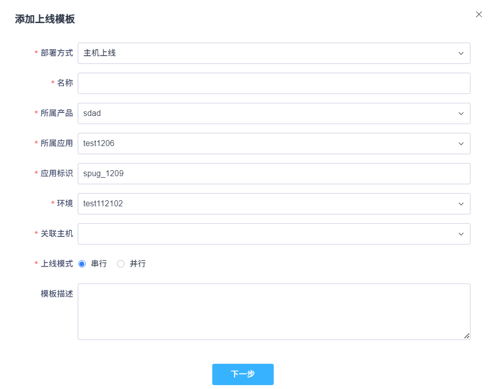 主機上線模板如下,每個應用和環境只能創建一個上線模板。