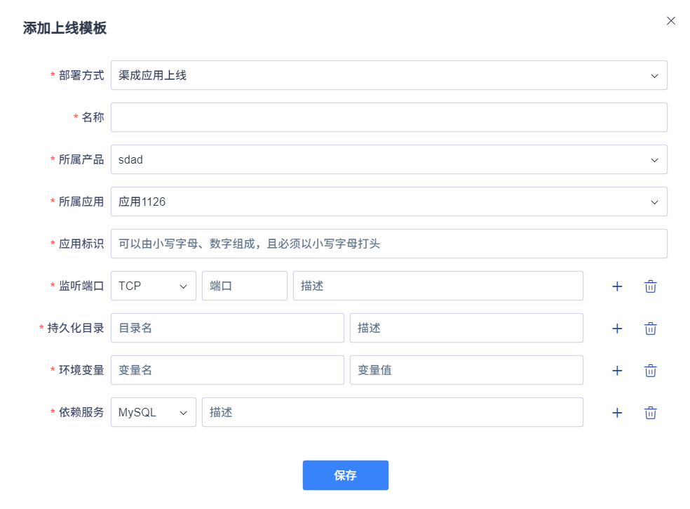 選擇主機上線或渠成應用上線的部署方式時,需先配置上線模板。