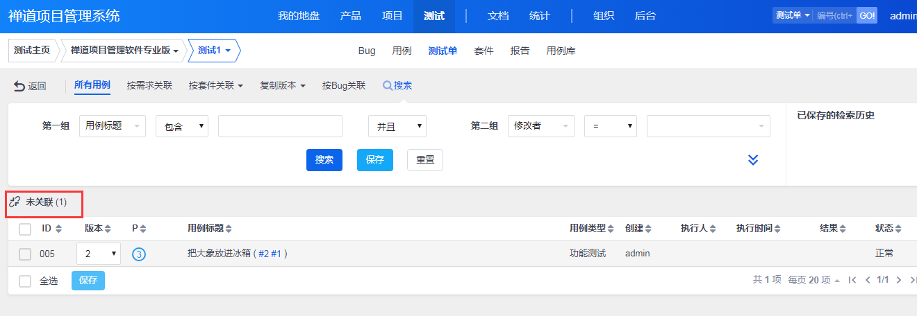 - 測試用例可以通过上面的搜索表单进行搜索。