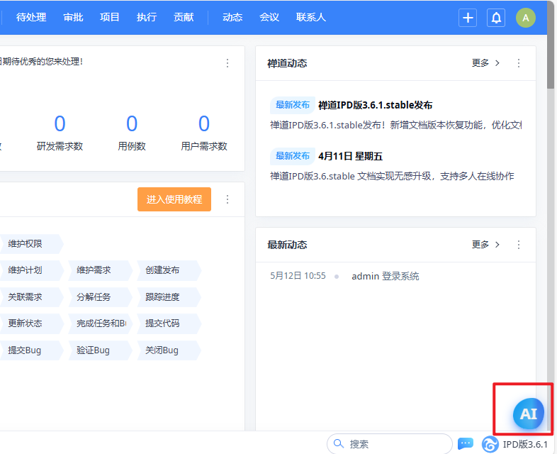 目前我們的AI插件兼容禅道開源版21.7.4,企業版12.3,旗艦版7.3,IPD版4.3版本。