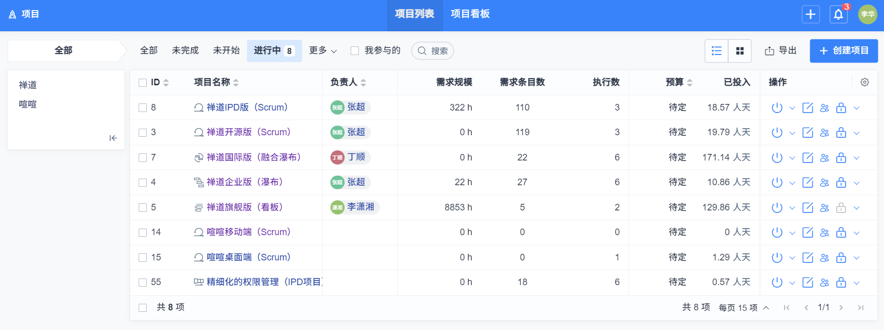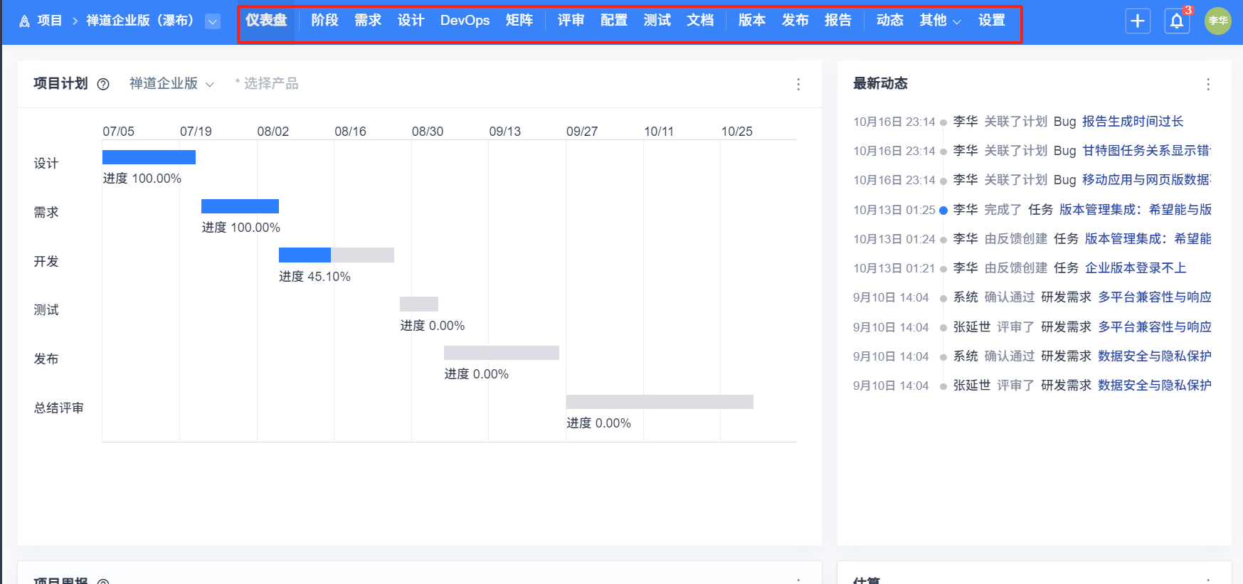 禅道16.0版本開始,項目新增了瀑布管理模型;16.2版本開始,項目新增了看板管理模型。