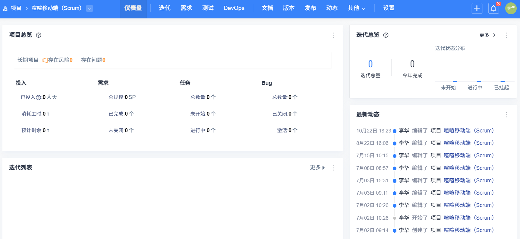 一个项目可以包含多个冲刺或阶段。点击冲刺名称,会进入相应的執行页面。