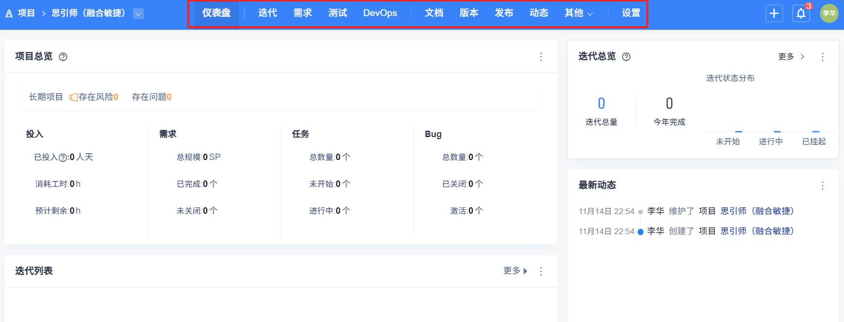 項目管理方式点击选择融合敏捷,填写好信息,点击保存即可。