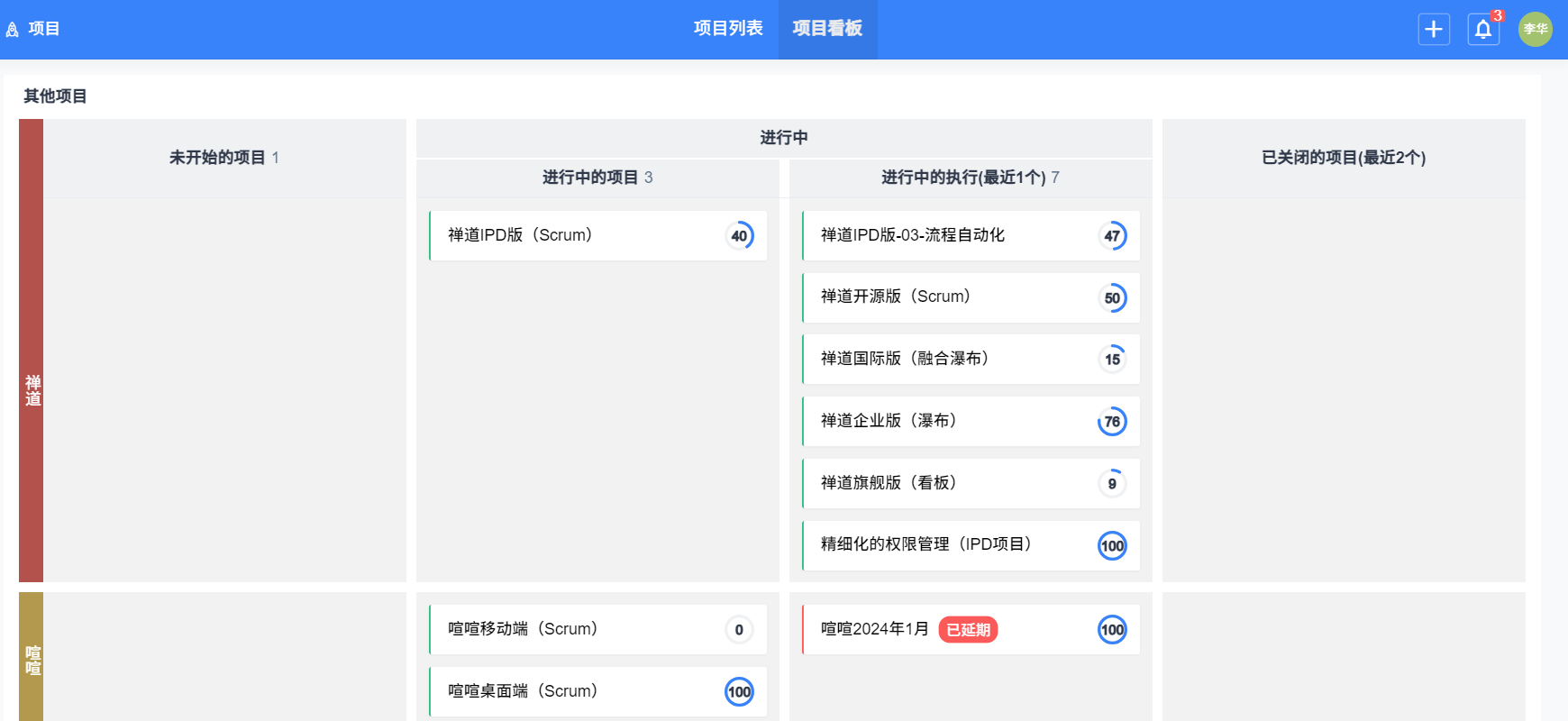 通過項目看板可以可視化查看項目信息。