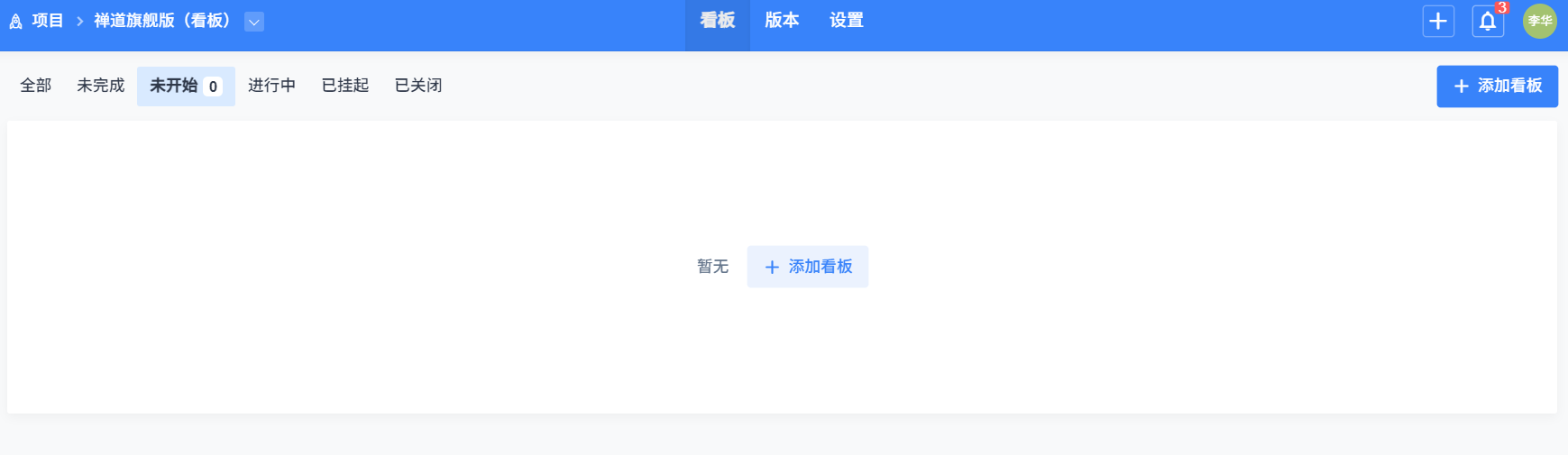 創建成功的看板項目,可以在里面开始添加看板来进行項目管理。
