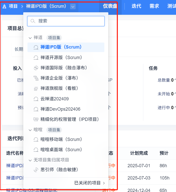 禅道18.2版本开始,项目新增了融合敏捷和融合瀑布項目。