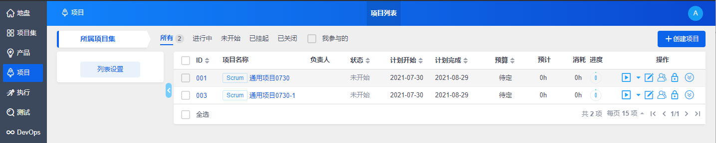 1、 在项目列表页面,点击一个具体项目名称,如“通用项目0730”,你将进入该项目的儀表盤。