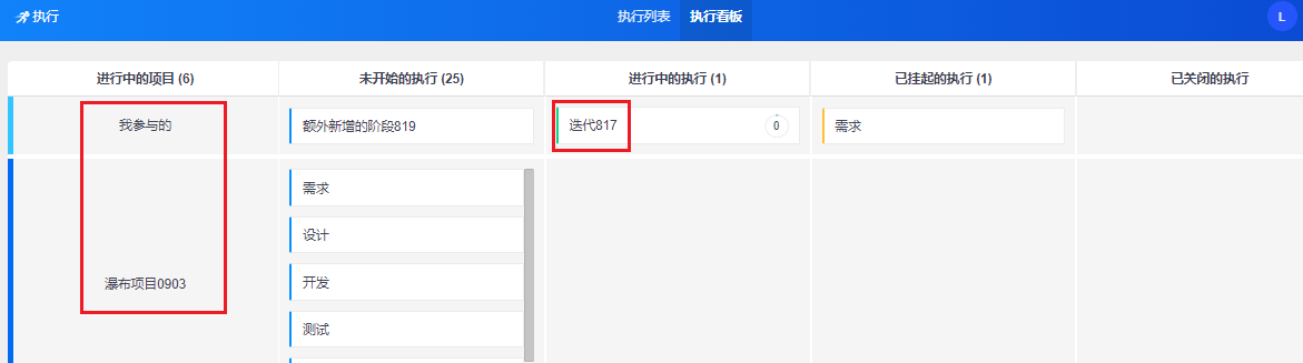 点击執行视图左上角的執行,下图红框位置,进入執行看板页面。