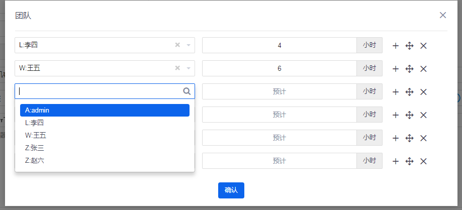 在團隊裏,選擇團隊成員,填寫上對應的預計工時。