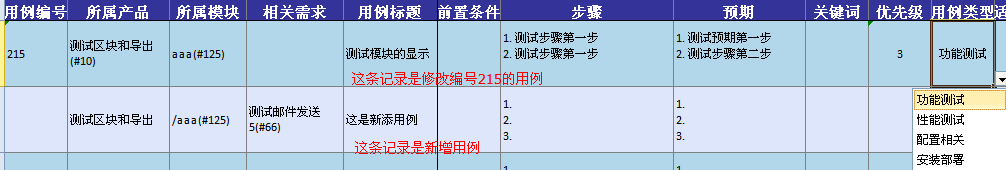如果不是使用的模板文件,如果條目的用例編號有值,那麽該條目是編輯相應編號的用例。如果沒有用例編號,這是新增一條用例。