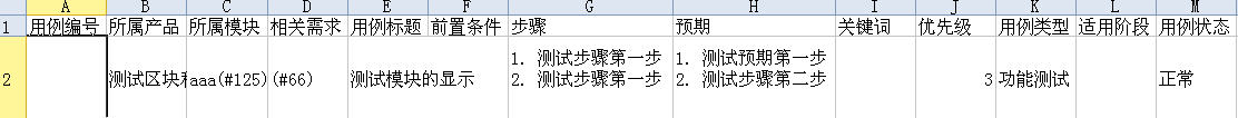 3、導入的內容包括:用例標題、所屬模塊、相關需求、優先級、用例類型、用例狀態、執行頻率、適用階段、前置條件、步驟、預期