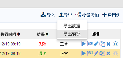 1、測試->用例->導出->導出模板,導出模板文件,在文件中填寫數據,保存。